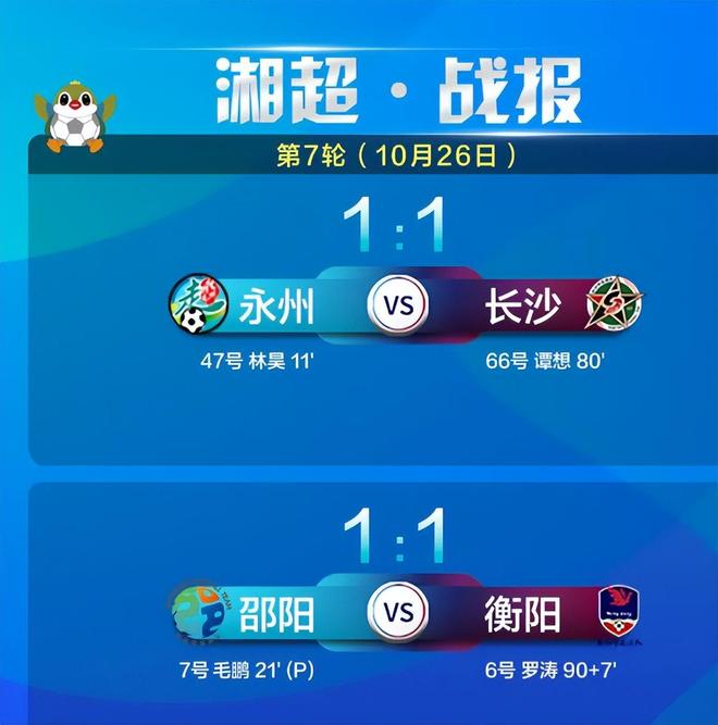 10月26日,湘超联赛第七轮剩余两场比赛的结果稍显意外。永州主场1-1战平长沙,一球不败击败长沙。与此同时,邵阳队在热身赛中主场1-1战平排名第一的衡阳队。邵阳队与衡阳队的比赛非常碎片化。比赛因为各种原因多次中断,看得有些郁闷。比赛的结果是由裁判的两次判罚决定的,这也是颇有争议的。第20分钟,邵阳队摔入禁区,裁判吹响点球哨,邵阳队7号毛鹏获得点球。赛后回顾判罚,原来这场PK是一次误判,邵阳队进攻球员控球失败,衡阳队防守球员没有犯规。当身体接触发生时,邵阳队球员在衡阳队球员的身体后面挺身而出。这种类型的身体接触充其量只能被视为合理的冲突。或许是为了弥补这次判罚,裁判在第25分钟对邵阳队18号孙力俊雄出示了红牌。孙力军雄的行为确实危险,可能会被红牌罚下。然而,孙力军雄的动作只是冲球。他继续看球,没有注意到衡阳队的防守。当他看到防守者时,他向后退了一步。因此,我拒绝给他红牌。如果之前没有判罚的话,判给黄牌是合适的。随后,邵阳队10人队对阵衡阳队11人队。10号最佳射手、前锋吴孟浩在第22分钟因伤被换下,但衡阳队并没有等到伤停补时结束,替补6号罗涛上场。趁着角球机会,禁区内断球,胸部停球,抽射破门,取得制胜球。两队握手言和,比赛战成1-1平。首场对阵株洲队的比赛中,罗涛出任左中场位置,表现非常出色,但主力位置被表现更好的7号王腾翔占据。第七轮后的湘超积分榜如下:衡阳第五,邵阳第十。当然,裁判也是比赛的一部分。因此,服从裁判是球员的基本做法。从这个意义上来说,本场比赛两队的表现都非常出色。也请适当对待喜爱的粉丝们。不过,近几轮湘超联赛中,裁判的判罚一直是争议的焦点。这个数字再次要求淘汰赛阶段引入视频裁判来解决这一问题。最后,值得提到邵阳主场踢球是向苏超学习,也在球场上增加了观众席。我个人认为,每个地区该学还是不学,要根据自己的实际情况而定。