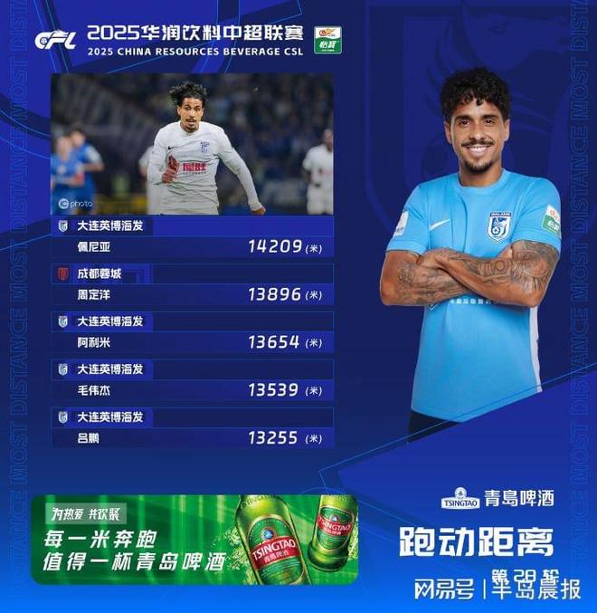 (@中超中超)27日晚,中超第28轮参赛资格名单揭晓。大连英博有四名选手进入前五名。这也从另一个角度解释了他在与申卡的战斗中的优越表现。本赛季,英博集团本赛季至今已连续七轮有球员进入该榜单前五名,成为上榜球员最多的球队。联赛首轮,英博在场上与浙江队打成平手。本轮中超排名榜中,吕鹏和阿里米位列前两名,莱亚德排名第五。这是英博队历史上第一场中超联赛。球队客场表现抢眼,最终在中超联赛中首次拿到积分。联赛第二轮和第三轮,阿里米连续出现在首发名单中,分别占据第一名和第三名ly。此外,他在联赛第18轮和第22轮中都是前五名的球员,这使他成为英博队中排名最高的球员。本赛季,阿里米第六次上榜,以13654米的成绩排名第三。领先者是他的队友佩尼亚,他跑出了14209米的距离。他不仅创造了单赛季最远距离纪录,也是本赛季首次有球员在单场比赛中跑完14000米以上。毛伟杰和陆鹏分别以13.539米和13.255米的成绩获得第四名和第五名。客场对阵神华队的英博队凭借整体优势,能够在比赛的大部分时间里保持领先,这与球员们孜孜不倦的奔跑有直接关系。本届赛事前五名大部分被英博占据,但来自成都的周定阳却屈居第二。他无疑是中国队最有天赋的球员本赛季中超联赛。迄今为止,他已连续14场联赛稳坐初始榜单榜首,并21次进入榜单前五。半岛晨报39度视频记者 隋海涛